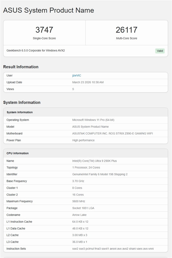 实测数据暴露,Ultra 9 290K Plus在Geekbench单核测试中获3747分,多核测试达到26117分,比拟Ultra 9 285K,其单核与多核性能的性普及幅度达约17%。
