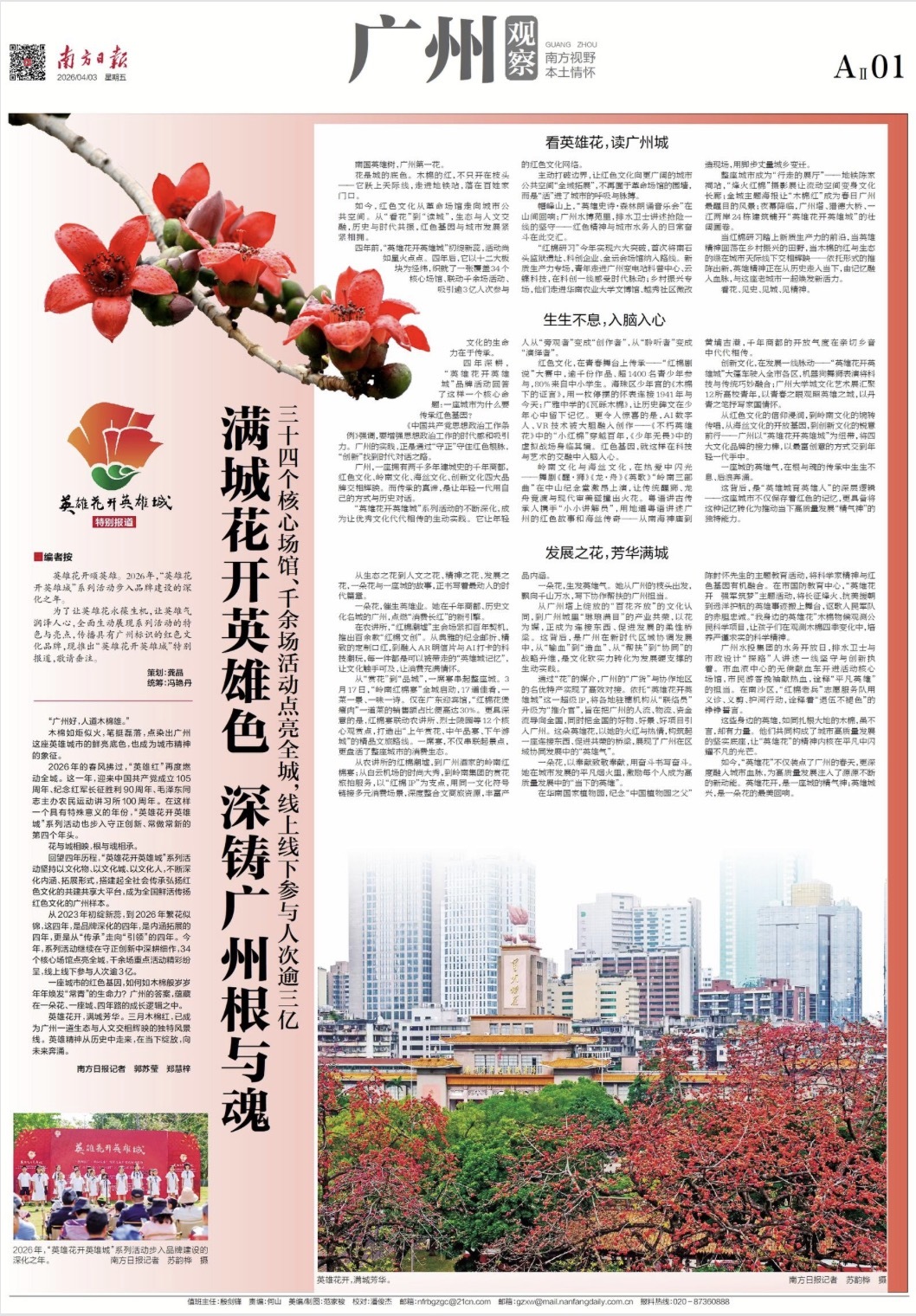 ——广州东谈主爱木棉,爱的是一朵东谈主文之花。用她的人命力,植一棵树,育一代东谈主。