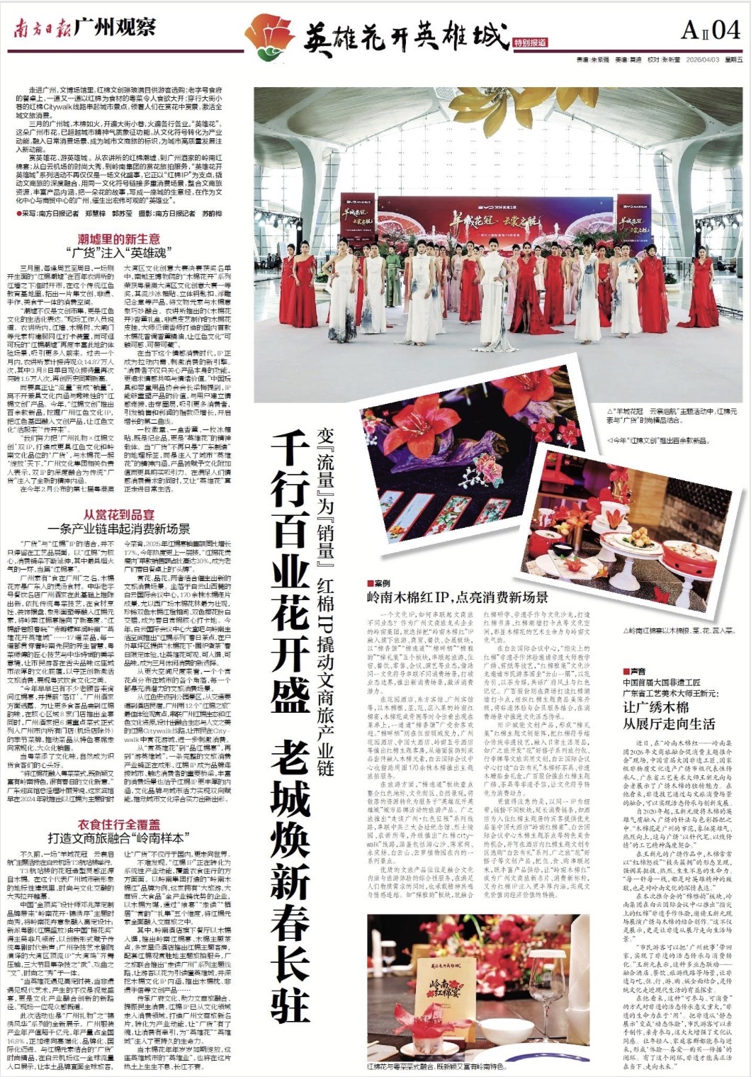 从农讲所的红棉潮墟,到广州酒家的岭南红棉宴;从白云机场的先锋大秀,到岭南集团的赏花旅拍,“红棉IP”撬动整条规商旅产业链。