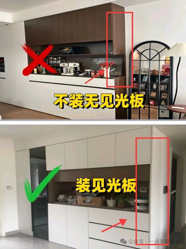 即是柜子侧濒临着过谈那块板,一定要用跟柜门同色的板子封上。有东谈主为了省这点钱,露着柜体的神采,一眼看往日,举座感全无,钱王人花了,别省这终末一哆嗦。