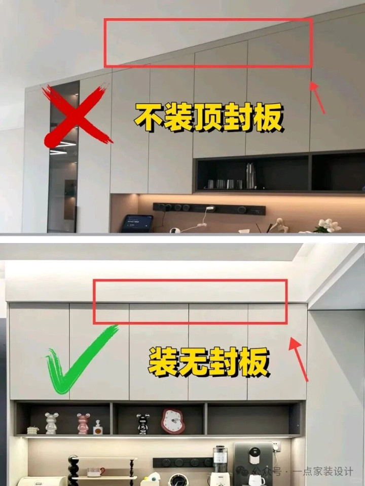 咫尺流行极简风,天博体育app柜子成功作念到顶,顶上连根封板王人别露,看起来就像一面墙,大气得很。以前那种上头留一截封顶板的作念法,除了积灰没啥用,还显得贫困。