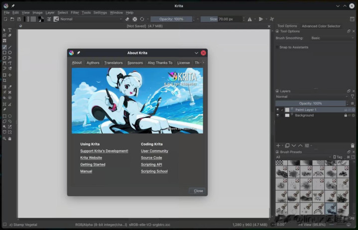 Krita 5.3:基于 Qt 5,主打 踏实闇练,保举坐蓐力用户首选。