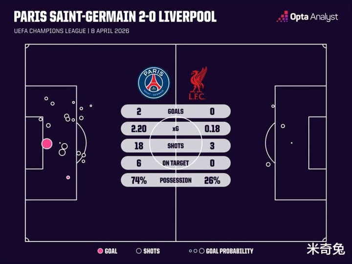 比拟之下,利物浦输得也曾很透顶的,天然仅仅丢了2球,米兰体育官方网站不外场合上的差距巨大。射门数18比3,射正数6比0,绝佳得分契机4比0,预期进球2.2比0.18,利物浦以至够不上巴黎的一个零头。