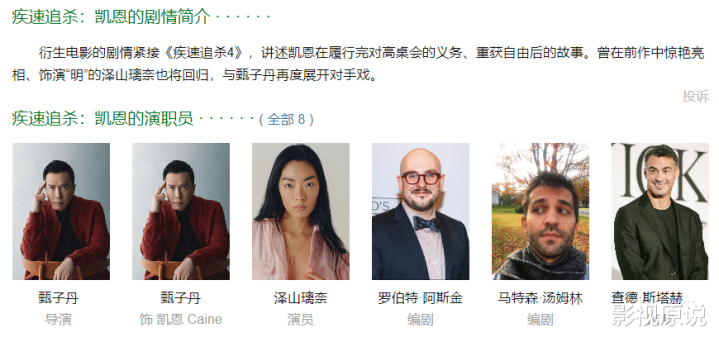 对此,主创东谈主员决定为凯恩打造一部独处电影,因而《疾速追杀》系列的首部繁衍片《凯恩传》就要出身了。