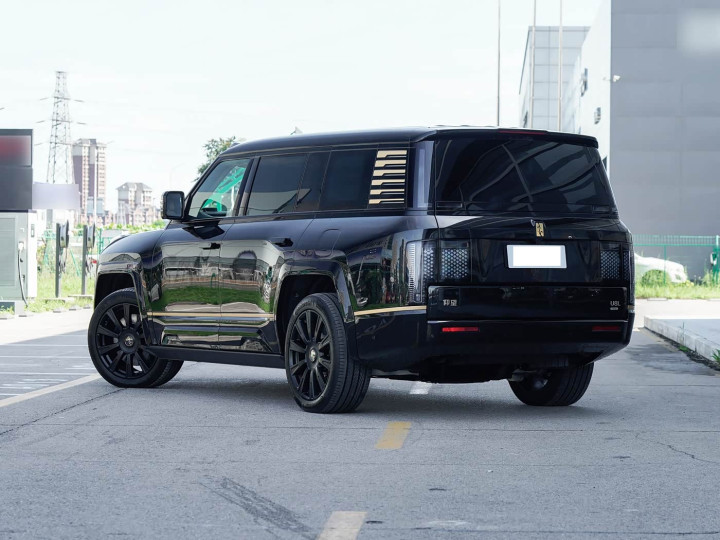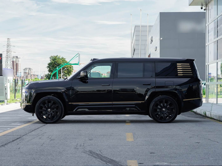 再来看车身侧面部分,动作全尺寸SUV,仰望U8L的车身长宽高达到5400/2049/1921mm,轴距长达3250mm,比拟圭臬版U8,车长增多372mm、轴距加长200mm,且总计增量用于拓展车内空间^。车身侧面弃取面面俱到的笔直线条,一条金色腰线从前脸一语气至尾部,宛如金色丝带般突显尊贵气质,C柱的“雷击”覆盖纹路也升级为金色,进一步强化豪华属性。23英寸八孔式铸造轮毂搭配加宽至285mm的轮胎,兼顾好意思不雅与实用性,既扶助了行驶浮现性,又裁减了风阻。