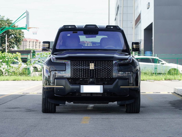 咱们最初来看新车的外不雅贪图方面,仰望U8L的车头贪图以“鼎峙六合”为中枢形而上学,将收用鼎文化融入细节,打造出兼具威严感与辨识度的视觉结果。前脸弃取迷漫大气的布局,进气格栅期骗访佛青铜纹路的浮雕贪图,搭配左右各99颗菱形灯珠构成的鼎型大灯,点亮后宛如一尊巨鼎耸峙,舒服出不怒自威的威望。与圭臬版U8比拟,U8L的前后车标均弃取24K金打造,车头顶部的三激光雷达布局犹如“人烟台”,既为高阶智能驾驶提供硬件复旧,又成为私有的贪图标记。此外,前保障杠、后视镜等细节处的黑化治理,进一步强化了整车的尊贵感与通晓气味。