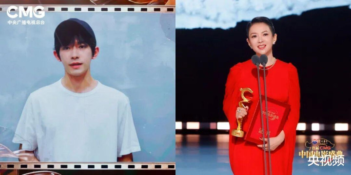 △电影《狂野期间》主演易烊千玺荣获“年度剧情电影男演员”、电影《酱园弄·悬案》主演章子怡现场领取“年度剧情电影女演员”荣誉