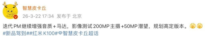 别传没?最近数码圈有东说念主蹲在小米生态链工场门口数快递盒,就为证据一件事:K100 Pro Max是不是真把电板塞到9000mAh去了。博主@智谋皮卡丘前两天放了条短音讯,没配图,就几行字,后果驳斥区成功炸锅——“PM”新机、影像重构、马达调校加码、扬声器重作念……光是这几个词,老K粉依然寡言灵通备忘录初始记账:上代K90 Pro Max卖3999元起,7560mAh,100W有线+50W无线,骁龙8E5跑分破400万,三颗5000万镜头一字排开。那这一代,如果主摄真奔着2亿像素去,潜望长焦也拉到5000万,底照旧1/1.28英寸,这哪是升级?几乎是在手机后头焊了台卡片机。