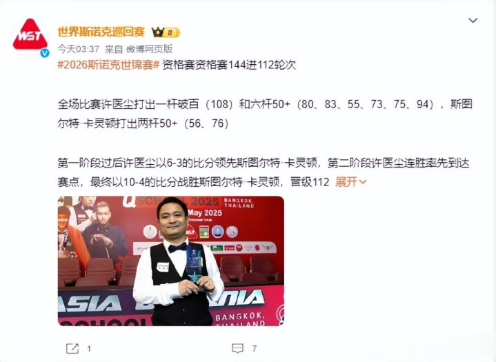 以10-1的悬殊比分横扫敌手,快速的出杆和精确的围球,仿佛让东说念主看到了他巅峰时期的影子。